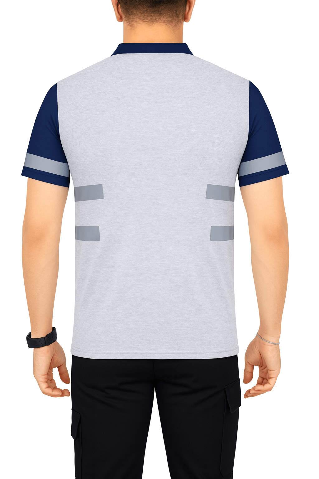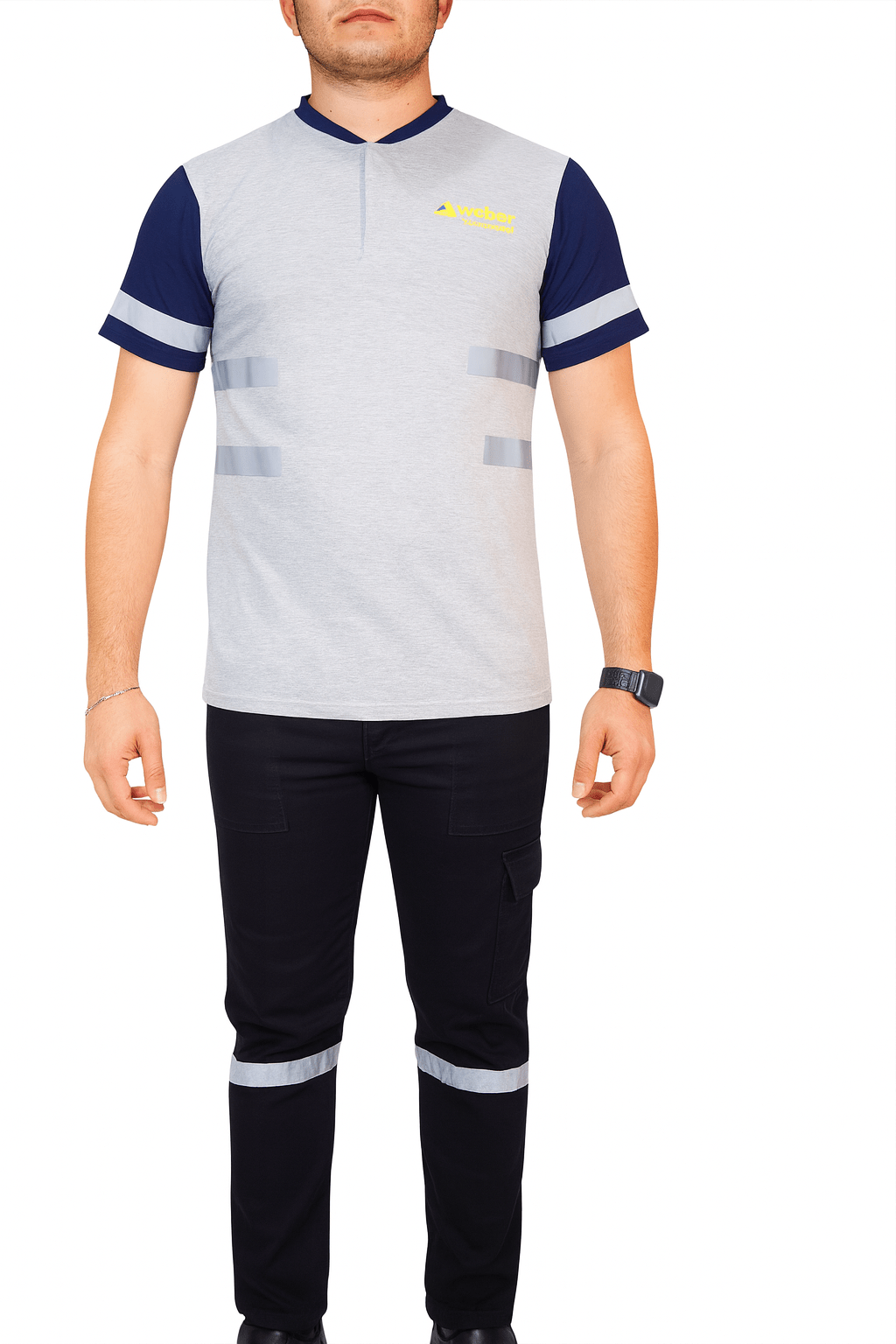 Mekaizen Çıtçıtlı Bisiklet Yaka İş Tişört, reflektörlü ve nefes alabilen kumaşıyla konforlu, güvenli ve logolu iş kıyafeti arayan firmalar için idealdir.