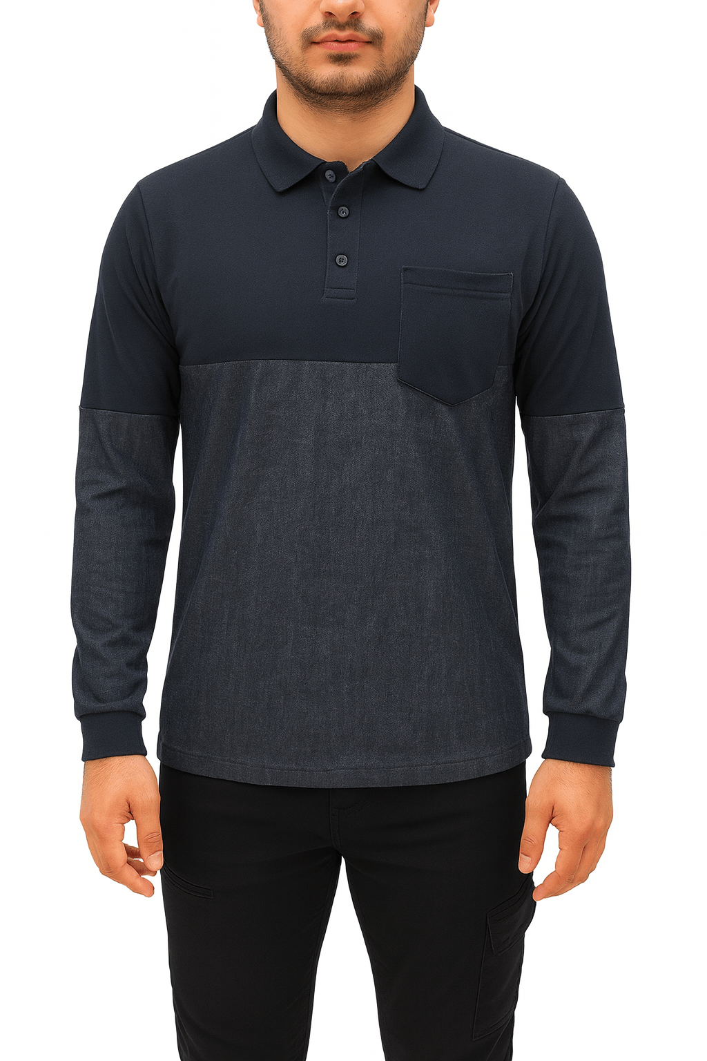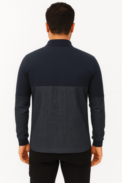 Hem konforlu hem de şık bir seçenek arayanlar için tasarlanan bu sweatshirt, lacivert ve denim kumaşın benzersiz kombinasyonuyla öne çıkar. Yaka ve göğüs kısmı lacivert, kol ve bel kısmı ise denim görünümlü kumaştan üretilmiştir. Sol göğüste bulunan tek cep, kullanışlı bir detay sunar. Yaka kısmındaki düğmeler sayesinde giyip çıkarması kolaydır. Kalın ve yumuşak yapısıyla serin havalarda sıcak tutar.
