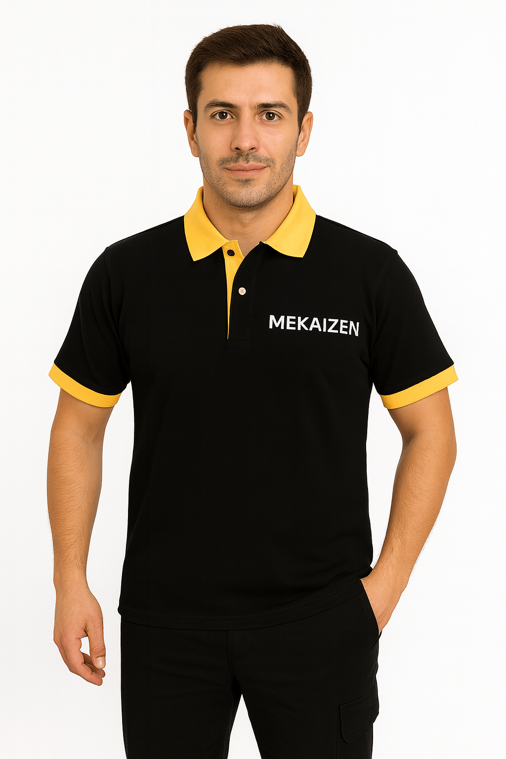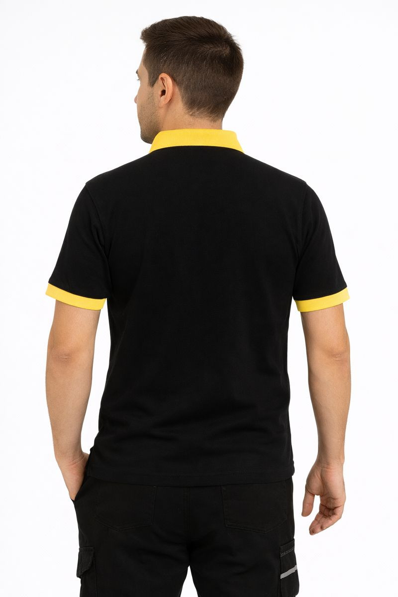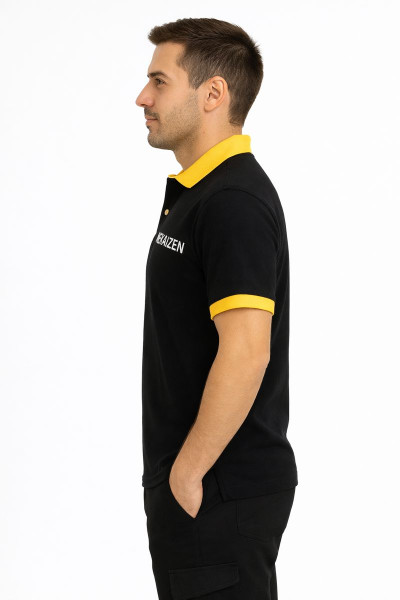 MEKAİZEN Siyah-Sarı Polo Yaka Lakos, kurumsal kimliğinizi yansıtmak için tasarlanmıştır. Kaliteli pike kumaşı sayesinde terletmez ve sıcak havalarda rahat bir kullanım sunar. Kontrast renkli yaka ve kol ribana detayları, ürüne modern bir hava katarken, profesyonel bir duruş sergiler.