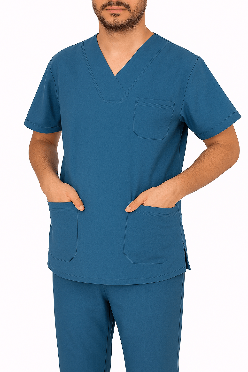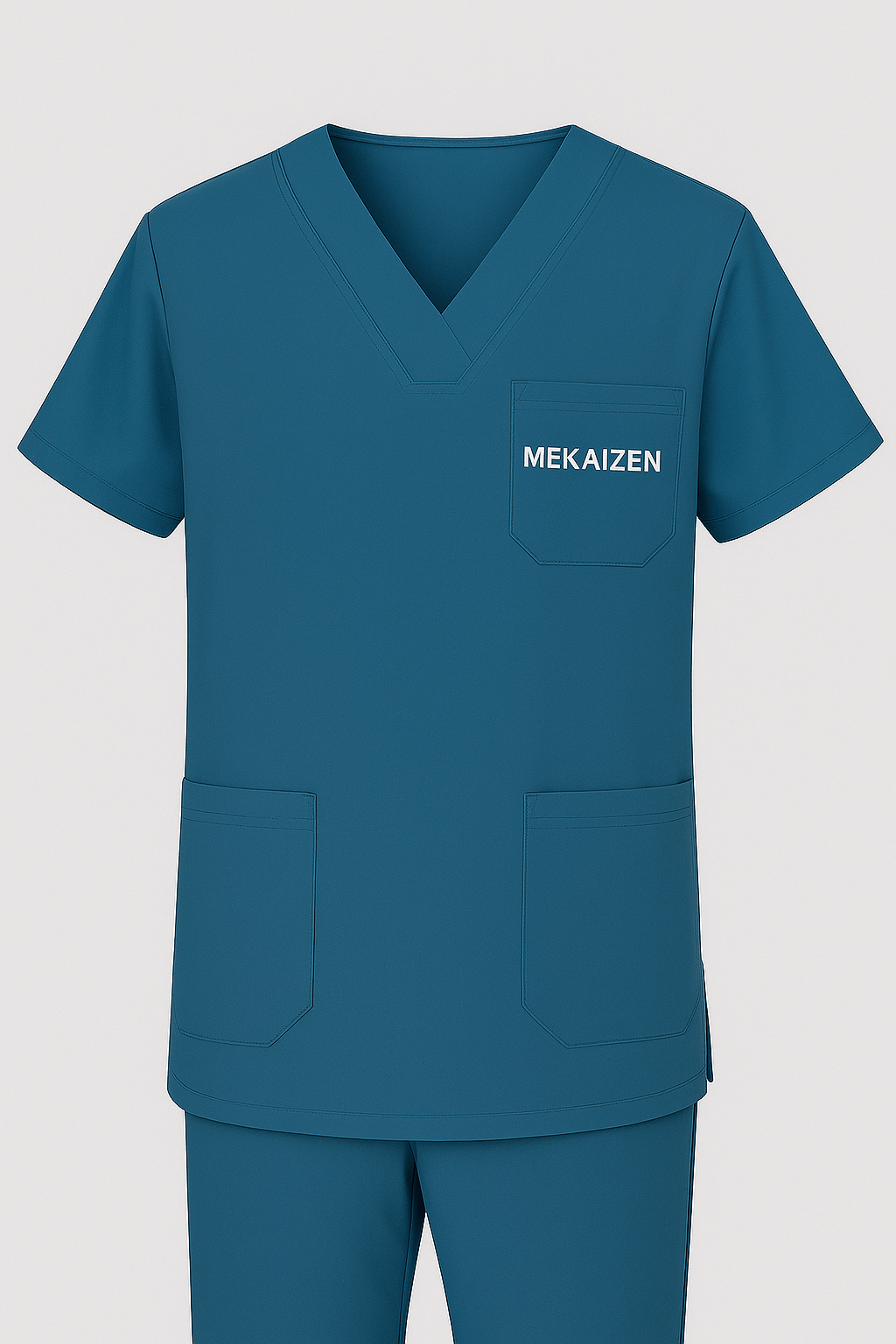 Mekaizen Turkuaz V Yaka Medikal Scrubs Takımı, hafif ve nefes alabilen kumaşıyla sağlık personeli için ideal bir iş kıyafetidir. Firmanıza özel logo ve isim baskılı üretim imkânı sunar.