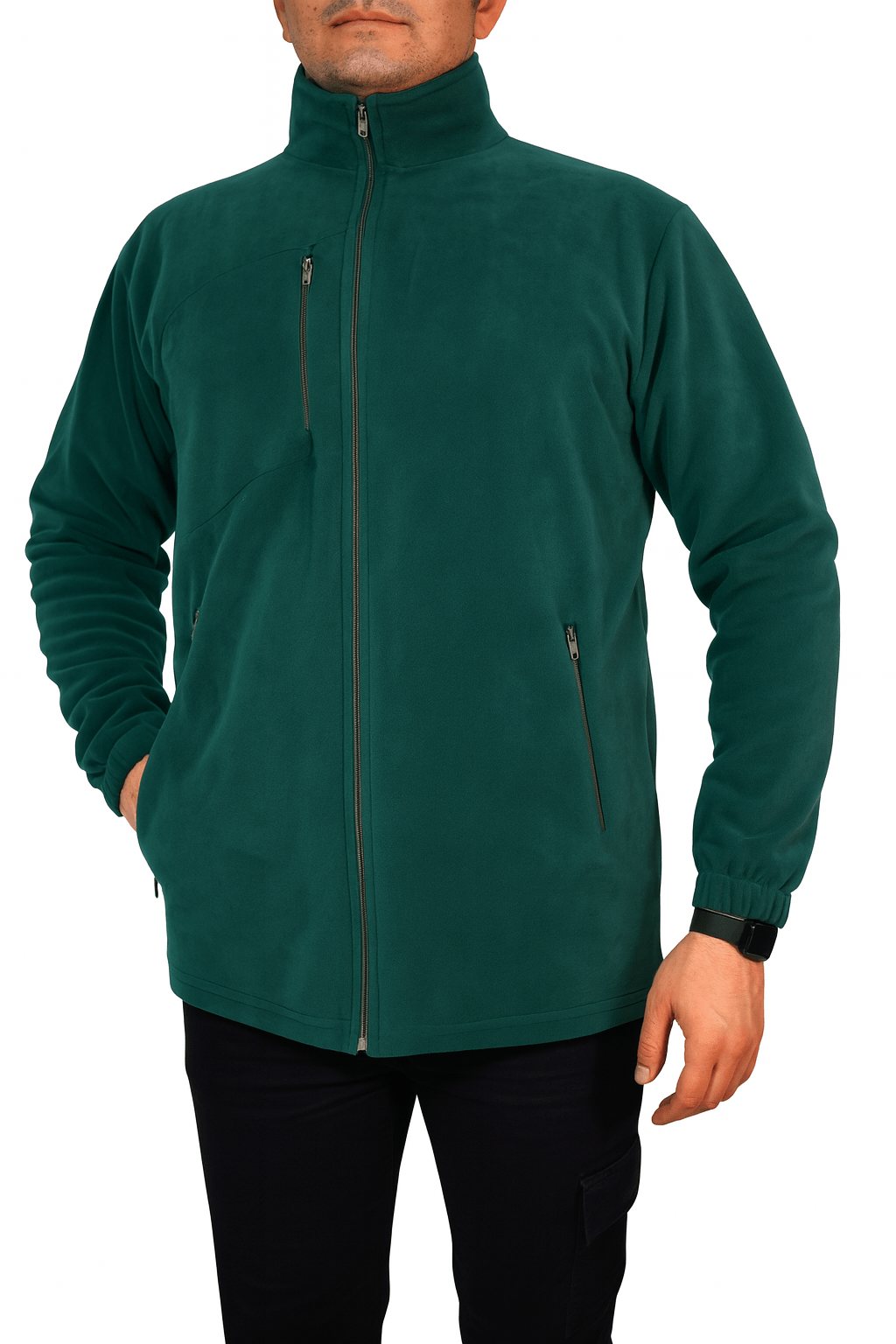 Canlı yeşil renkteki bu polar ceket, soğuk kış günlerinde sizi sıcacık tutmak için tasarlanmıştır. Yüksek gramajlı polar kumaşı sayesinde maksimum ısı yalıtımı sağlar. Manşetli kol ağızları ve dik yakası, soğuğun içeri girmesini engeller. Modelin bir elini cebine koyması, ceketin geniş ve kullanışlı ceplerini vurgulamaktadır. Yan cepleri fermuarlıdır, böylece anahtar, cüzdan gibi eşyalarınızı güvenle taşıyabilirsiniz.
