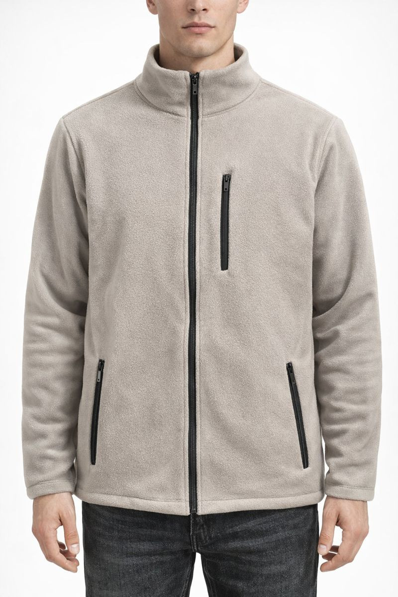 Unisex Bej Polar Ceket – Fermuarlı 3 Cepli Konforlu , Günlük Kullanım